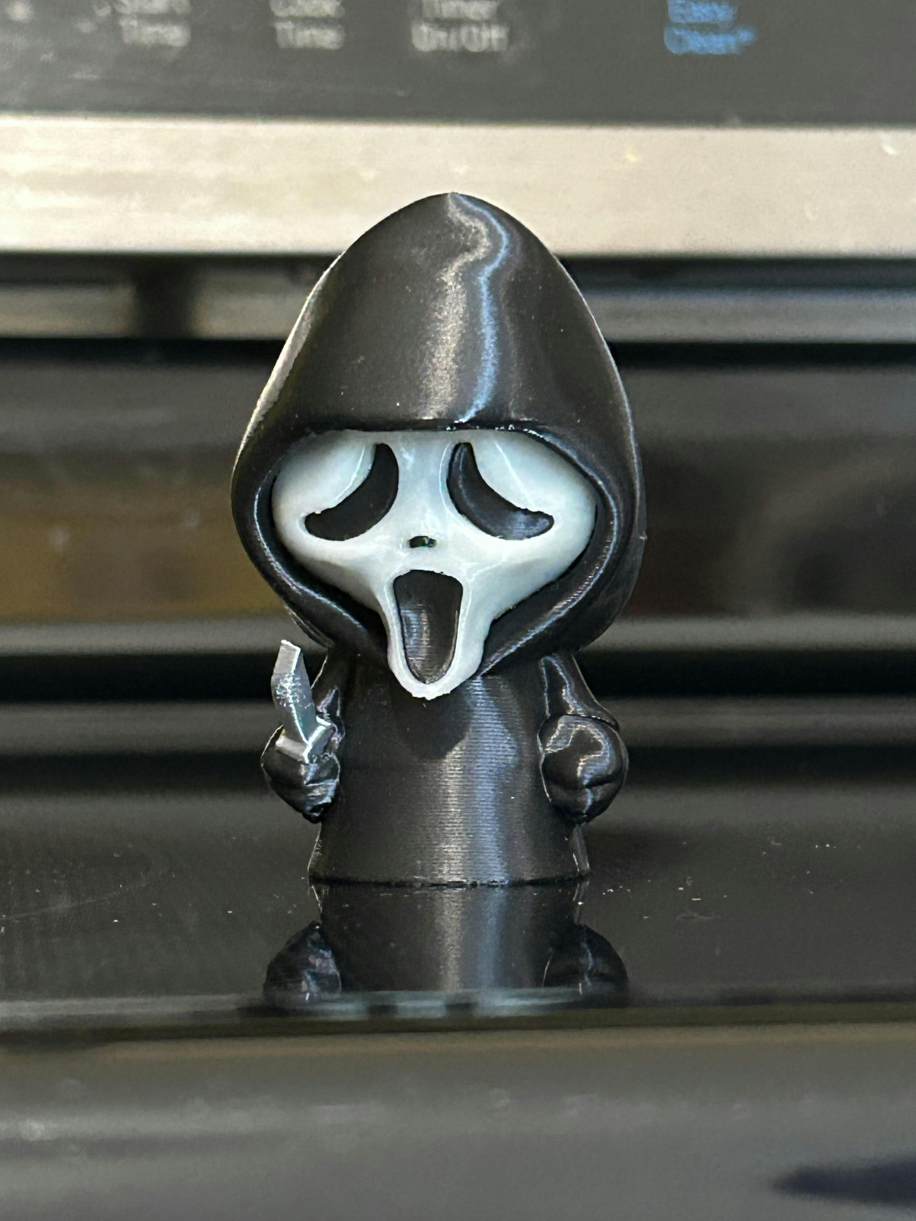 Do you like scary movies? Are you looking for a spooky addition to your horror movie collection? Look no further than this 3D printed Ghostface figurine from our Tiny Terrors collection!