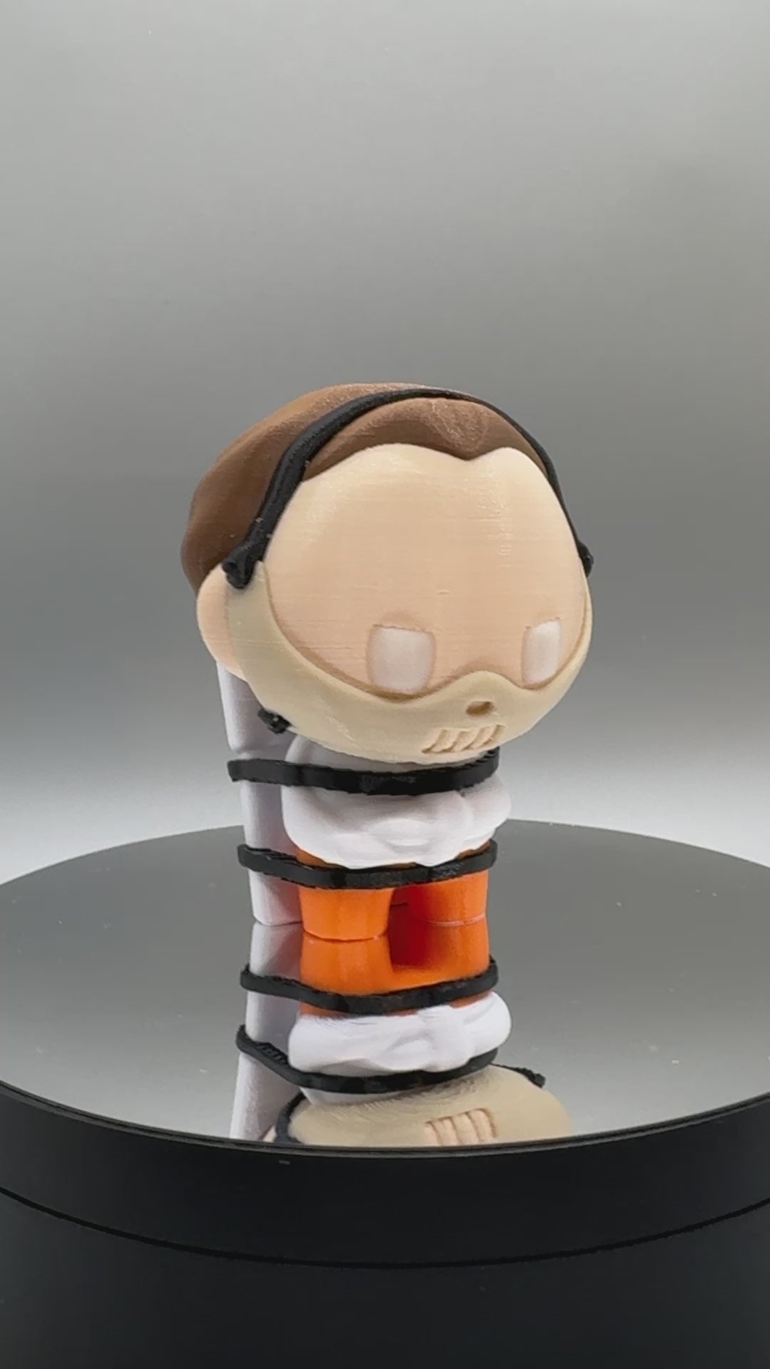 "Good evening, Clarice" introducing our 3D printed Hannibal figurine from The Silence of the Lambs! This multi-color print features green glow in the dark, orange, black, white, and brown filament to create a unique depiction of the infamous Hannibal character. Standing at approximately 3 inches tall, this figurine is perfect for fans of the horror movie franchise. With his haunting mask and ominous presence, Hannibal is a chilling addition to any collection.